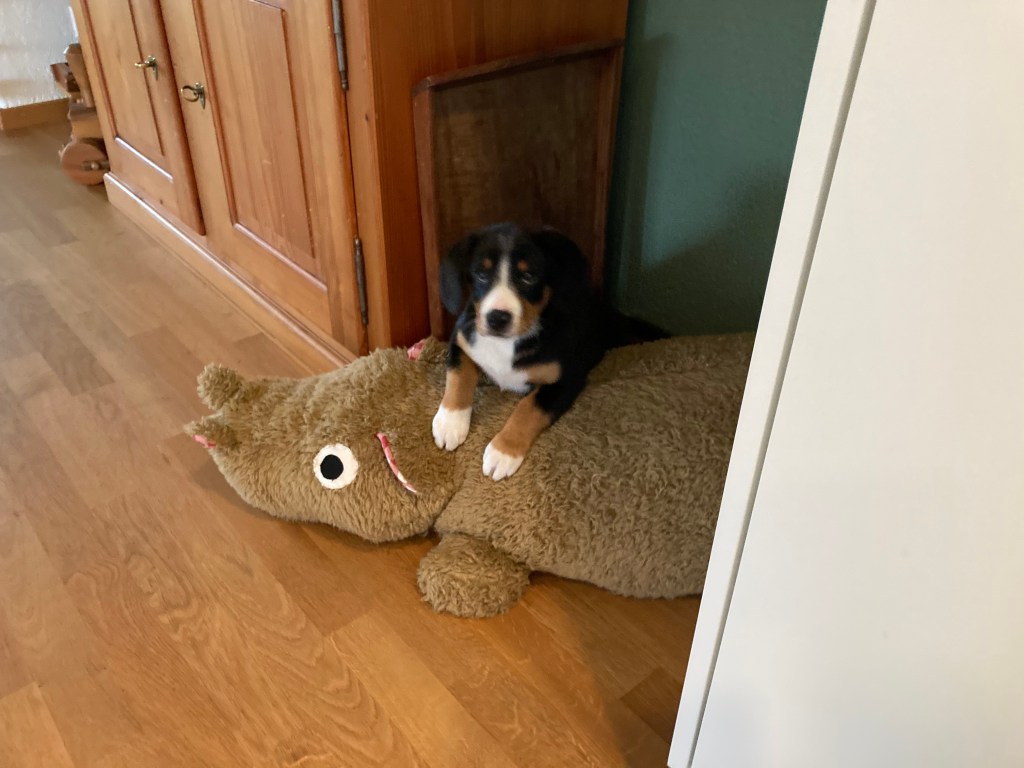 Soba vom Tanneggerbächli kam am 12. September 2021 im Alter von 10 Wochen zu uns nach Stettfurt. Mit ihrem fröhlichen Wesen brachte der Welpe Soba stets eine heitere Atmosphäre in unser Zuhause. Ihre verspielte Art und die neugierigen Augen bescherten uns viele fröhliche Momente. Sie eroberte unsere Herzen im Sturm.