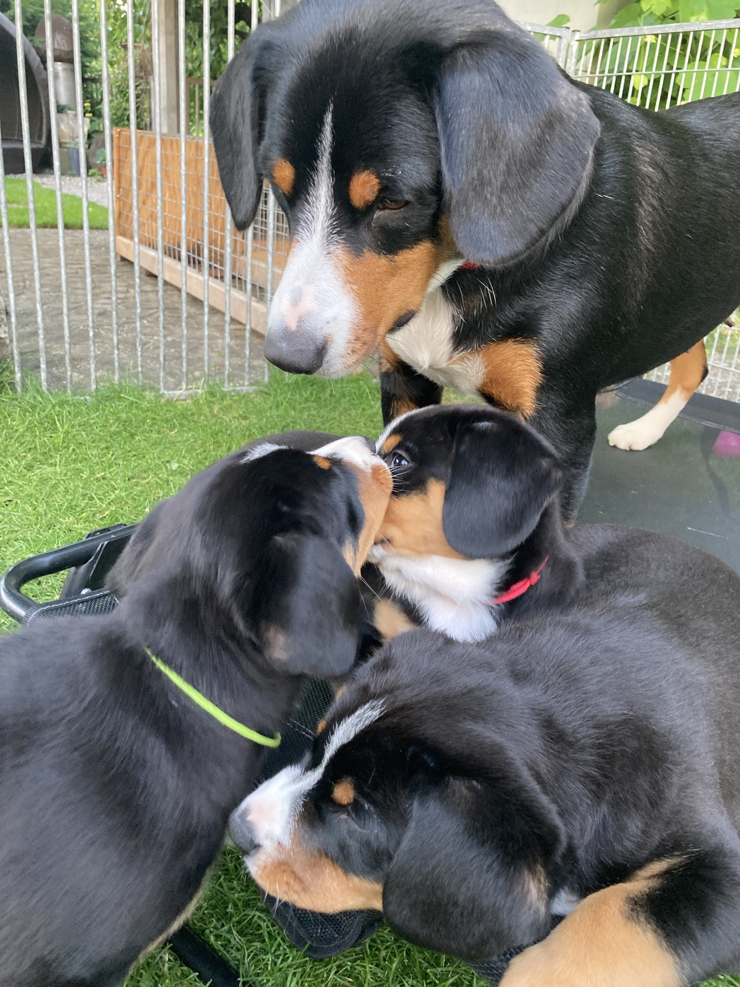 Das grosse Schmatzen Am 20. April 2024 hat Soba vier gesunde Welpen zur Welt gebrachtDie Kleinen entwickeln sich prächtig und Soba meistert ihr Aufgabe super!